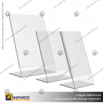 • El porta grafica acrílico A4 formato L vertical 2mm tiene como principal característica la visualización frontal del arte en orientación vertical con 75° de inclinación para facilitan la exhibición del arte con una presentación simple y limpia. Su forma en tipo “L” genera un bolsillo que protege la gráfica y le da estabilidad al soporte. El portagrafica de acrílico A4 está fabricado en acrílico transparente de 2mm de gran calidad.